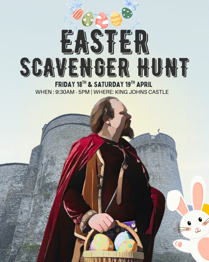 ooking for a fun way to keep the kids entertained this Easter in Limerick? Join us at King John’s Castle for a playful and engaging Easter Scavenger Hunt on Friday 18th and Saturday 19th April 2025. It’s a great way for families to explore the castle together while enjoying some seasonal fun!