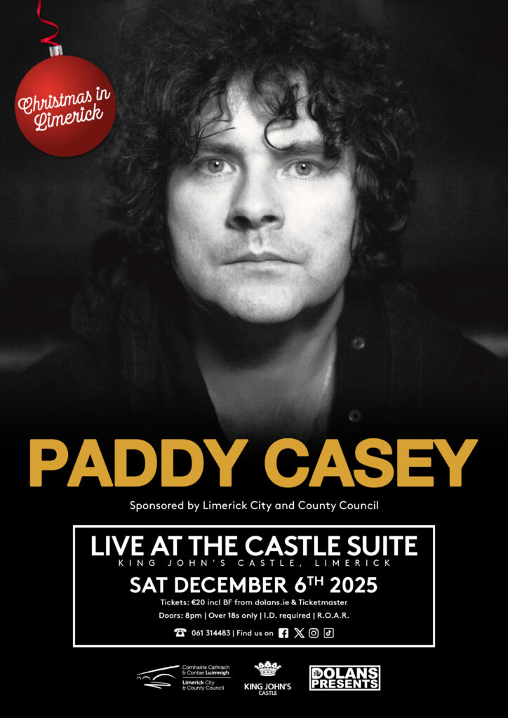 King John’s Castle is thrilled to welcome one of Ireland’s most celebrated singer-songwriters, Paddy Casey, to open the brand-new Castle Suite Sessions this December 6th at 8pm.